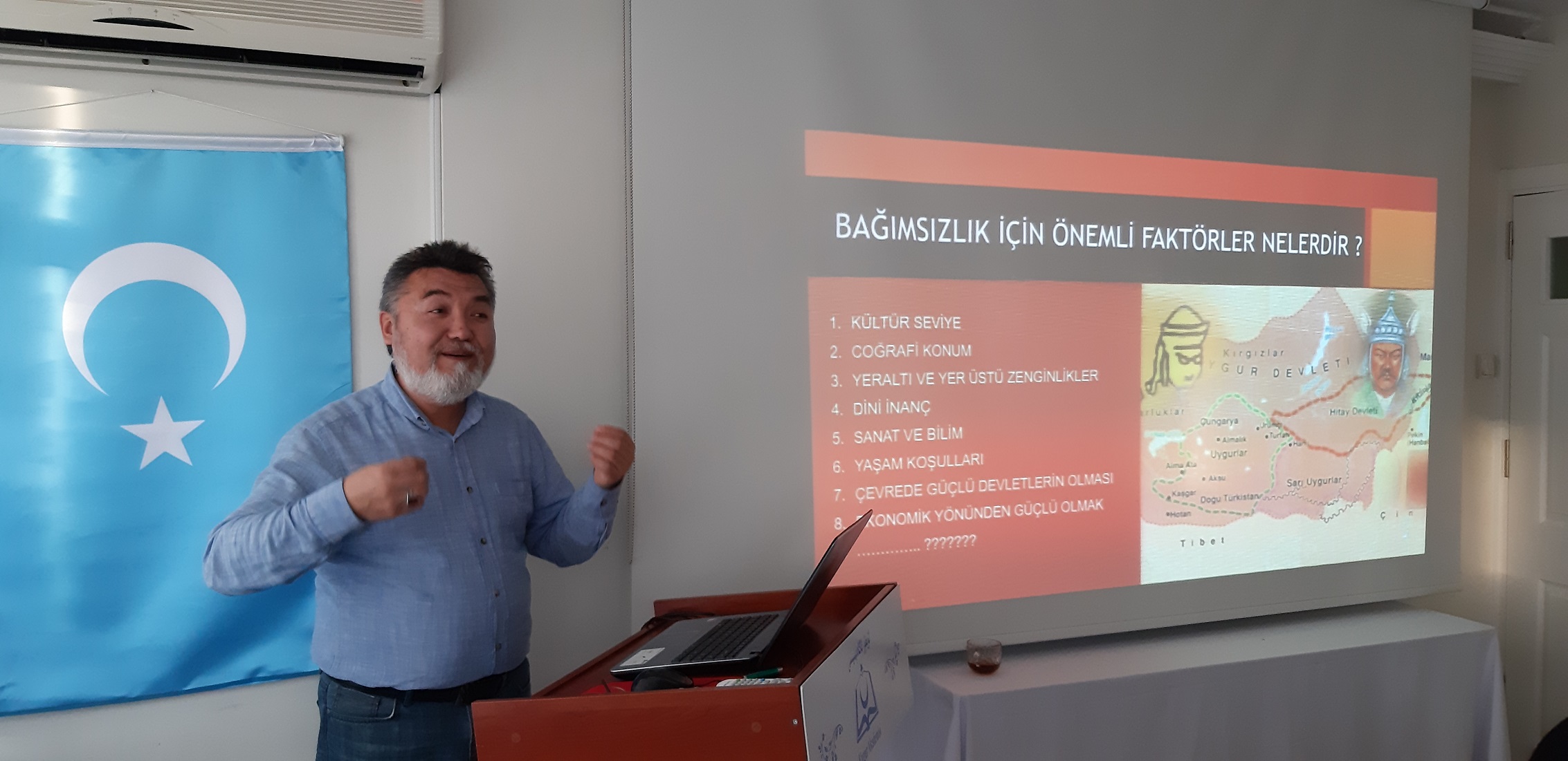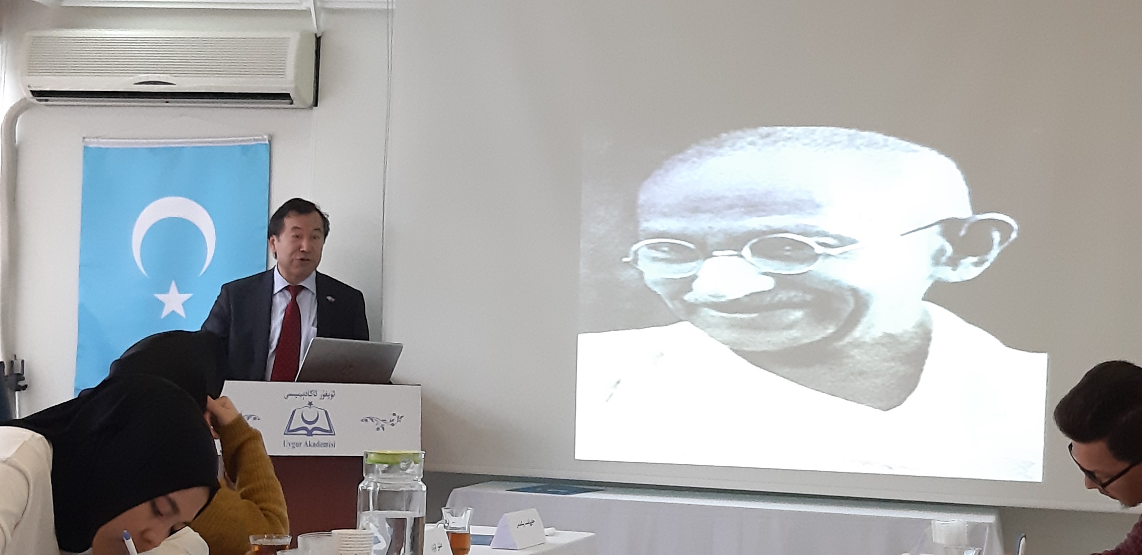 كۇرسنىڭ 2-دەرسىدە دۇنيا ئۇيغۇر قۇرۇلتىيىنىڭ ياپۇنىيەدىكى ۋەكىلى ئىلھام مەخمۇت ئەپەندى «ياپۇنىيە – خىتاي مۇناسىۋىتى ۋە ئۇيغۇر مەسىلىسى» تېمىسىدا لىكسىيە بەردى.