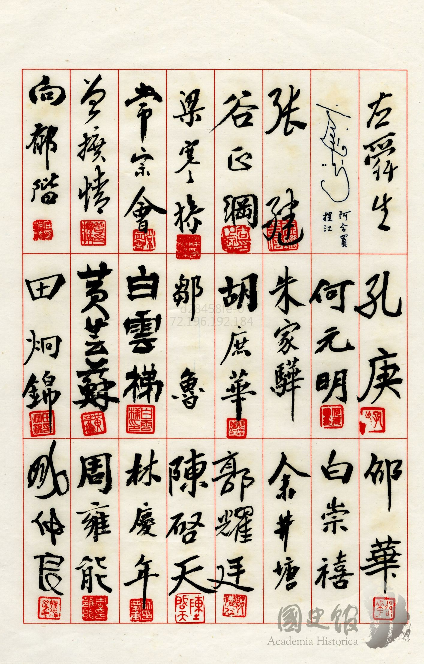 1946-يىلى ئېچىلغان «خەلق ۋەكىللەر قۇرۇلتىيى» گومىنداخۈي ئىمزا دەپتىرىدىن بىر كۆرۈنۈش. يۇقىرىقى قۇر سولدىن 7-ئىمزا ئەخمەتجان قاسىمىنىڭ ئىمزاسى