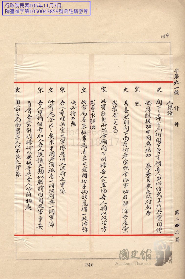 مىنىستېر سۇڭ (تۆۋەندە سۇڭ دەپ يېزىلىدۇ): ئۆتكەنكى قېتىملىق سۆھبەتتىن كېيىن مەن جياڭ ۋېييۈەنجاڭغا دوكلات قىلدىم. سۆھبەتنىڭ قاتمال ھالەتكە كېلىپ قالغانلىقىنى ۋە جانابىڭىزنىڭ ئىككى دۆلەت ئارىسىدىكى بارلىق ئۇقۇشماسلىقلارنى تۈگىتىپ، بۇندىن كېيىن ئىككى دۆلەتنىڭ دوستانە ھەمكارلىق ئورنىتىپ، ھەرقانداق توقۇنۇشتىن خالىي بولۇشنى ئۈمىد قىلىدىغانلىقىڭىزنى ئېيتتىم. بۈگۈن مەن جاۋاب خەت تاپشۇرۇپ ئالدىم ۋە ھازىر تەرجىمە قىلىنىدۇ. جياڭ ۋېييۈەنجاڭنىڭ جاۋاب تېلگىراممىسىنى ئوقۇپ ئۆتۈشتىن بۇرۇن مەن جانابىڭىزغا ئۆز مەيدانىمنىڭ ئارقا كۆرۈنۈشىنى بىر چۈشەندۈرۈپ ئۆتۈشنى خالايمەن. پېقىر ھەرگىزمۇ گەپدانلىق قىلىۋاتقىنىم يوق. ئەمەلىيەتتە، جانابىڭىزغا جياڭ ۋېييۈەنجاڭنىڭ قانچىلىك دەرىجىدە چوڭ يول قويۇۋاتقانلىقىنى بىلدۈرۈپ ئۆتمەكچىمەن.