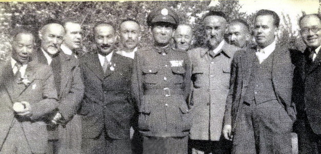 مەيدىسىگە «ئىستىقلالىيەت ئۈچۈن كۈرەش» ئوردېنى تاقىغان ئەخمەتجان قاسىمى ئەپەندى جاڭ جىجۇڭ قاتارلىقلار بىلەن غۇلجا شەھىرىدە، 1947-يىل