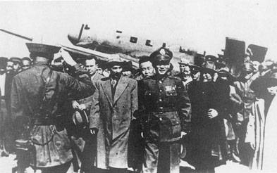 جاڭ جىجۇڭ غۇلجا ئايردرومىدا. 1947-يىلى ئاۋغۇست
