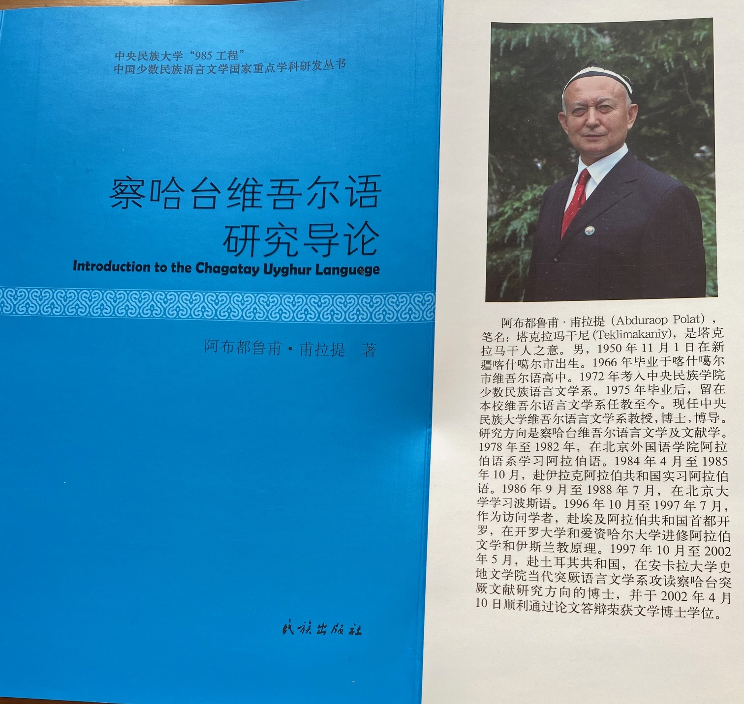 2017-يىل 6-ئايدا، مىللەتلەر نەشرىياتى تەرەپىدىن «察哈台维吾尔语研究导论» (چاغاتاي ئۇيغۇر تىلى تەتقىقاتىغا يەتەكلەمە) ماۋزۇلۇق (فورماتى1/16 960 x 640 مىللىمەتىر) ھانزۇچە خاس ئەسەرىم نەشىر قىلىنىپ، تارقاتىلدى. بۇ چىندە جۇمھۇرىيەت قۇرۇلغاندىن بۇيان، چاغاتاي ئۇيغۇر تىل-يازىقى، ئەدەبىياتى ۋە ۋەسىقەلەر تەتقىقاتى مەزمۇن قىلىنغان ھانزۇ يازىقىدىكى تۇنجى ژىرىك خاس ئەسەر بولۇپ، ئۆز ساھەسىدە بوشلۇقنى تولدۇرغان شاراپەتلىك ئەسەر باھالاندى. مۇشۇ قىممەت ۋە ئەھمىيەت جەھەتتىن ئەيتقاندا، مەزكۇر كىتابىمنىڭ نەشىر قىلىنىشى 2017-يىلدىكىلا ئەرمەس، بەلكى مەن ئالىي مائارىپچىلىق بىلەن شۇغۇللانىپ كەلگەن قىرىق ئىككى يىلدىن بۇيانقى چوڭ شادىيانە ئىشلارنىڭ بىرسى بولدى.
