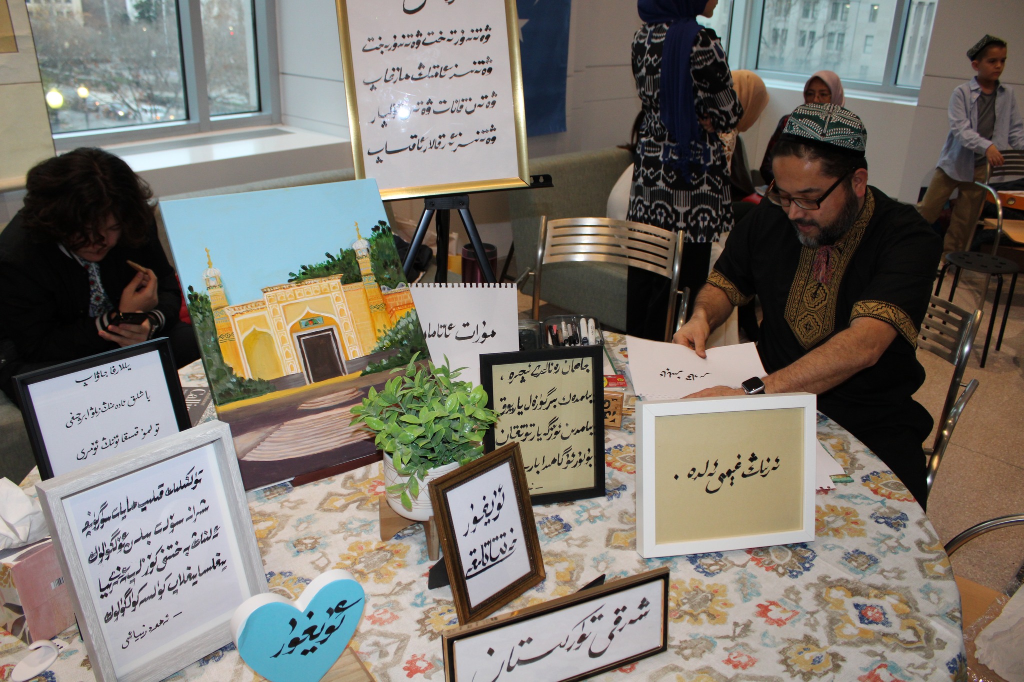 كۆرگەزمىدە ئۇيغۇر ياش-ئۆسمۈرلەر ئۇيغۇرچە ئۇسۇل ئوينىدى، رەسسام مەرۋايىت ھاپىز خانىم ئۆزى سىزغان رەسىملەرنى، فوتوگراف ئابلېكىم ئەمەت ئەپەتدى ئۆز تارتقان ئۇيغۇرلارغا ئائىت فوتو-سۈرەتلەرنى كۆرگەزمىگە قويدى. كۆرگەزمىدە ئۇيغۇرلارنىڭ كېيىم-كېچەك ۋە چالغۇ ئەسۋاپلىرىمۇ ئامېرىكىلىق مېھمانلارنىڭ ئالاھىدە دىققىتىنى تارتتى. كۆرگەزمە ئاخىرىدا ھەممە بىردەك ئوخشىغان ئۇيغۇر تائاملىرىغا ئېغىز تەگدى. يىغىن قاتناشقۇچىلار ئۇيغۇرلارنىڭ بۇ قەدەر مول مەدەنىيەتكە ئىگە بىر مىللەت ئىكەنلىكىنى يەنە بىر قېتىم تونۇپ يەتتى.