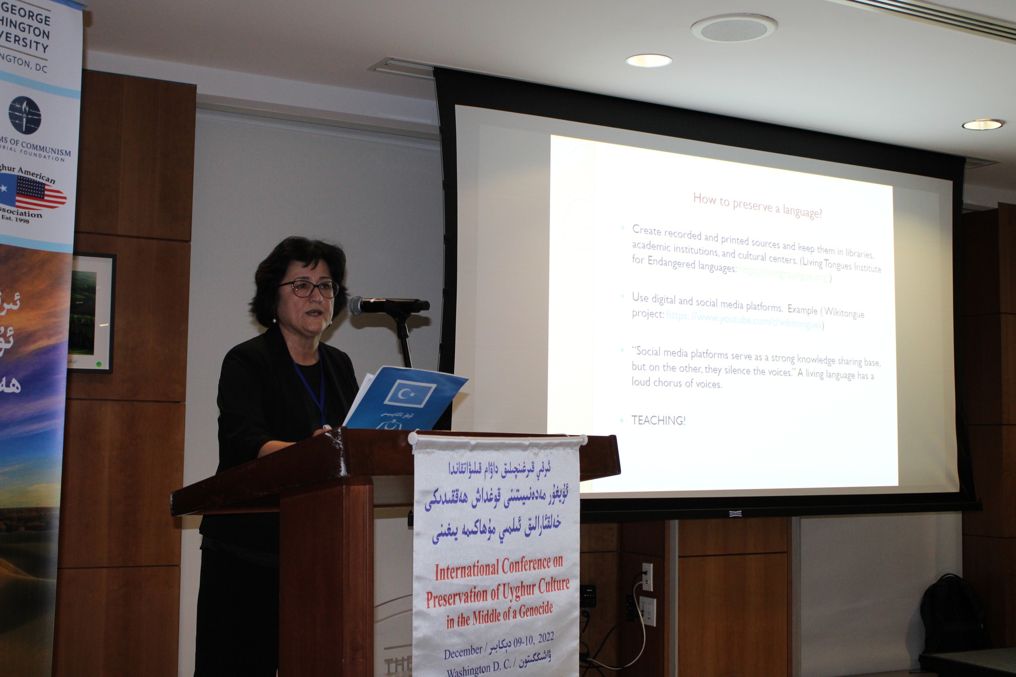 9 – دېكابىر جۈمە كۈنى «ئىرقىي قىرغىنچىلىق داۋام قىلىۋاتقاندا ئۇيغۇر مەدەنىيىتىنى قوغداش ھەققىدىكى مۇھاكىمە يىغىنى» ئامېرىكا پايتەختى ۋاشىنگتوندىكى جورج ۋاشىنگتون ئۇنىۋېرسىتېتى خەلقئارا مۇناسىۋەتلەر فاكۇلتېتىدا ئېچىلدى. يىغىننىڭ تۇنجى كۈنى مۇھاكىمە ئىنگلىزچە ئېلىپ بېرىلدى.
