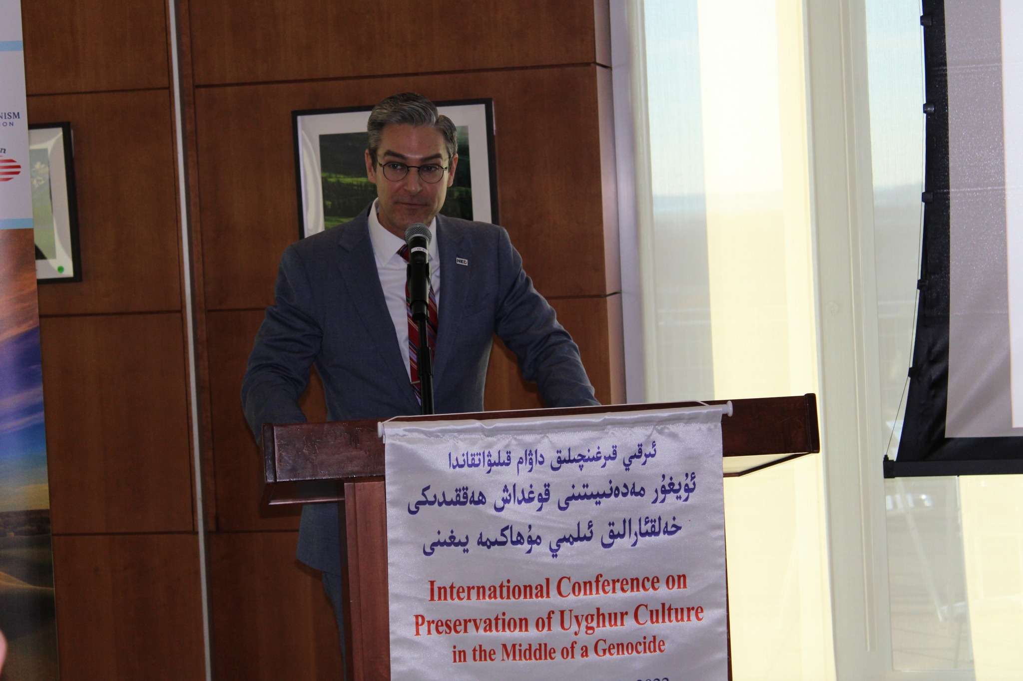 ئامېرىكا دېموكراتىيەنى ئىلگىرى سۈرۈش فوندى جەمئىيىتىنىڭ رەئىسى ۋە باش ئىجرائىيە ئەمەلدارى دىمون ۋىلسون (Damon Wilson) بۇ يىغىندا قىلغان تەبرىك سۆزىدە، خىتاينىڭ ئىرقىي قىرغىنچىلىقى، جۈملىدىن مەدەنىيەت قىرغىنچىلىقى داۋام قىلىۋاتقان بۇ كۈنلەردە بۇ مەدەنىيەتىنى قوغداش، بۇنىڭ ئۈچۈن مۇستەبىت خىتايغا قارشى دېموكراتىيەنى قوغداش ۋە ئۇنىڭ كۈچىنى كۆرسىتىش كېرەكلىكىنى تەكىتلىدى.