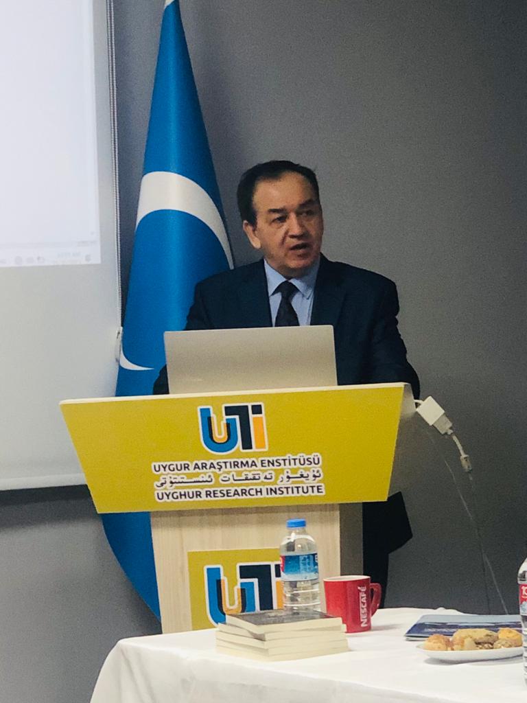 دوكتور نەبىجان تۇرسۇن ئەپەندى ئۆزىنىڭ يىگىرمە نەچچە يىلدىن بېرى ئۇيغۇر تارىخىغا ئائىت چەتئەل ئارخىپلىرىنى تەكشۈرۈش ئاساسىدا ماتېرىيال مەنبەسى توپلىغانلىقىنى، ئون نەچچە يىلدىن بېرى ئۇيغۇر ئومۇمىي تارىخىنى يېزىپ كېلىۋاتقانلىقىنى، بۇ قېتىم مەخسۇس 1933-يىلى 12-نويابىردا قۇرۇلغان شەرقىي تۈركىستان ئىسلام جۇمھۇرىيىتىنىڭ 90-يىلى مۇناسىۋىتى بىلەن بۇ جۇمھۇرىيەتنىڭ قۇرۇلۇشى ۋە يىقىلىش سەۋەپلىرى ھەققىدە مەلۇمات بەردى. ئۇ سۆزىدە شەرقىي تۈركىستان ئىسلام جۇمھۇرىيىتى قۇرۇلۇشىنىڭ ئالدى-كەينىدىكى تارىخى ۋەقەلەر، شۇ دەۋىردىكى خەلقئارا ۋەزىيەت، ئىچكى زىددىيەت ۋە ئۇيغۇرلارنىڭ سىياسىي ئاڭ سەۋىيەسى ھەققىدە ناھايىتى تارىخى ۋەقەلىكلەرگە باغلاپ تۇرۇپ كۆپچىلىككە يەتكۈزدى.