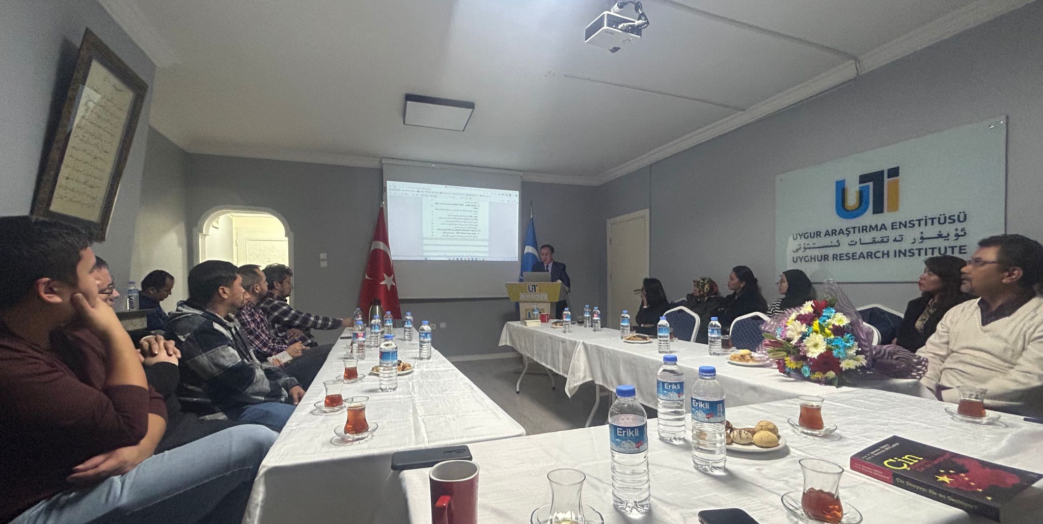 يىغىن ئاخىرىدا ئەنقەرەدىكى ئۇيغۇرلارغا ۋاكالىتەن ژۇرنالىست مىركامىل قەشقىرى ئەپەندى دوكتور نەبىجان تۇرسۇننىڭ ئۇيغۇرلار ئۈچۈن سىڭدۈرگەن ئىلمىي ئەمگىكى ئۈچۈن گۈل تەقدىم قىلدى.
