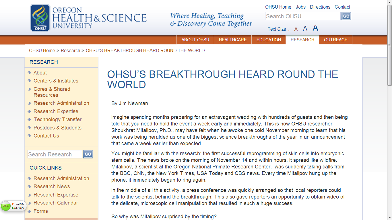 شۇندىن كىيىن بۇ ھەقتە 700 دىن ئارتۇق خەۋەر يىزىلدى ياكى تىلىۋىزوردا تارقىتىلدى. بۇ بۆسۇش – ۋىسكانسىن ۋە ياپونىيەدە ئىلىپ بىرىلغان ئادەمگە ئائىت تەتقىقاتلار دەۋر جورنىلى تەرىپىدىن بۇ يىل قولغا كەلتۈرۈلگەن بىرىنجى دەرىجىلىك پەن-تىخنىكىدىكى بۆسۇش دەپ قارالدى. تەبىئەت جورنىلى بۇ تەقىقات