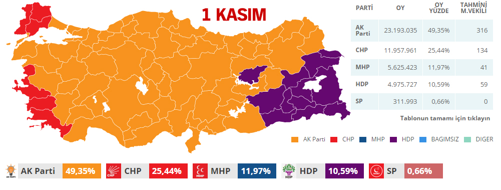 تۈركىيە 2015 – يىلى 1 – نويابىر ئومۇمىي سايلام تەپسىلاتى